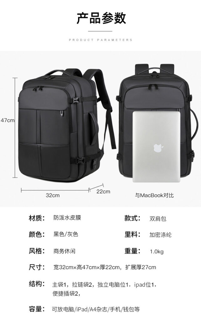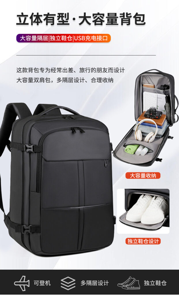 Big Extra Quality shoe-space EXPANDABLE travel backpack is an excellent choice for ensuring the security of your belongings while providing flexibility for different packing needs. It comes with some key features, such as Expandable Capacity, Water-Resistant Material and  compartment for shoes.